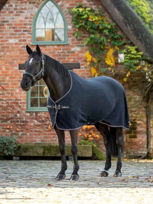 The ultimate versatile luxury fleece blanket in a smart and distinctive abstract pattern with metallic trim. The easy to use weight can be layered for added warmth on chillier days under stable sheets, travelling or at shows.The smooth outer fabric has a super soft touch and keeps dust to a minimum, while an exceptionally comfortable inner makes it an effective cooler.Wash at 30°