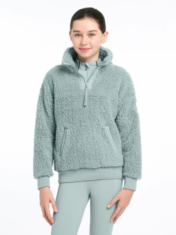 The Tia Teddy Fleece for young riders is the ultimate layer of cosy warmth. Crafted from super soft teddy fabric, it feels luxuriously comfortable against skin, whether worn as loungewear or an additional layer for winter riding. It features a ribbed hem to keep in the warmth, an embroidered logo at the sleeve and 3/4 zip neck that’s both stylish and practical.