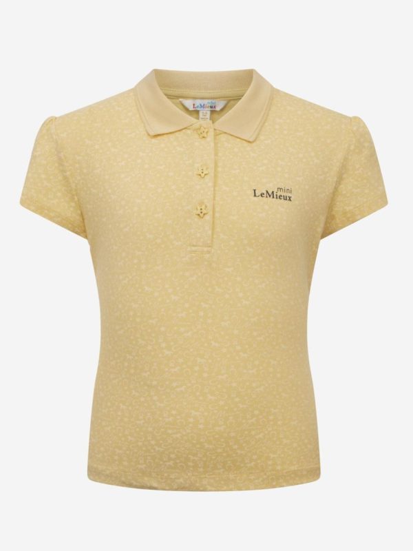 Made from soft pique jersey, this beautifully soft and comfortable Mini Polo Shirt comes in a classic fit with just a hint of stretch for long-lasting comfort.The front button placket, ribbed collar, puffed sleeves and funky star buttons give it a fun finish.Our Blossom and Mimosa colourways feature a new mini horse all-over print and cute star buttons. Our Lagoon colourway also has star buttons, and plain fabric with smart contrast tipping on the cuffs and collar.Be on trend by matching your Mini LeMieux pads, boots and ear bonnets for the complete look!