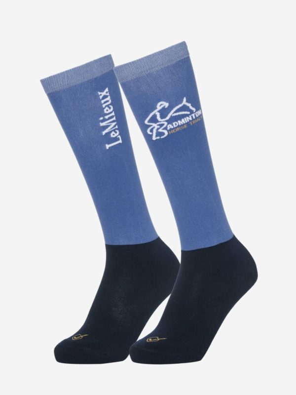 Our lightweight ultra close contact riding socks from LeMieux are now available in a two pack, one Badminton blue with navy feet, one navy with grey feet, perfect for eventing enthusiasts. The ideal memento of an unforgettable three day event, these socks are made to celebrate Badminton Horse Trials 2024. The soft, closely woven foot gives support and stability, while the topside seam ensures comfortable toes. The micro-weight stretch upper adds minimal bulk, and the seamless low profile fabric offers compression that enhances the fit of long boots.