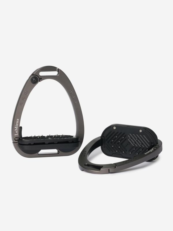 Vector stirrups are a new generation of stirrup – technically advanced and lightweight, but retaining a classic style expected from LeMieux.Machined from aviation grade aluminium offers an impressive strength-to-weight ratio, making them lighter than most stirrups on the market at just 419g each, whilst not compromising on stability.The ergonomic footplate of the Balance Stirrup is set at 5°, featuring a cross-track grip surface with embedded hardened steel pins, to enable lower leg stability, keeping the heels down.The footplate is supported by a twin-balance arch system that distributes the weight evenly across the base of the stirrup frame. The apex of the frame is recessed and off-set, encouraging a 45° outward orientation which makes it easier for the rider to locate the optimum angle for the foot and regain a lost stirrup.An integrated hinged arm has a two-stage release system, preventing unintentional opening. The spring-loaded arm locks into the base of the main frame meaning that when under maximum pressure, such as landing over a fence, the rider’s weight is spread evenly across the stirrup, preventing the outside from dropping and flexing. When pressure is put onto the arm of the stirrup, the arm releases allowing the foot to come out of the stirrup, minimising the risk of dragging. The stirrup arm breakout force = 36N (equivalent to 3.62kg) in testing, meaning enough resistance to stop it from opening unintentionally, but will release when needed.It’s important to note that no stirrup of this design (with a quick-release arm) is 100% guaranteed to open in the event of a fall. There are several factors, including a fall of the horse, a loose girth causing the saddle to slip, or a slow or unusual angle of exit that may not generate enough lateral force to open the release arm. This is very rare but users must be aware that no stirrup is completely foolproof in every eventuality.Competition Legal (FEI, British Dressage, British Eventing and British Showjumping).