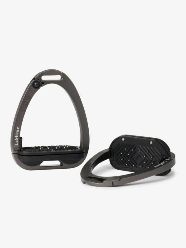Vector stirrups are a new generation of stirrup – technically advanced and lightweight, but retaining a classic style expected from LeMieux.Machined from aviation grade aluminium offers an impressive strength-to-weight ratio, making them lighter than most stirrups on the market at just 419g each, whilst not compromising on stability.The ergonomic footplate of the Control Stirrup is set at 0° with a cross-track grip surface with embedded hardened steel pins to provide maximum security for the boot.The footplate is supported by a twin-balance arch system that distributes the weight evenly across the base of the stirrup frame. The apex of the frame is recessed and off-set, encouraging a 45° outward orientation which makes it easier for the rider to locate the optimum angle for the foot and regain a lost stirrup.An integrated hinged arm has a two-stage release system, preventing unintentional opening. The spring-loaded arm locks into the base of the main frame meaning that when under maximum pressure, such as landing over a fence, the rider’s weight is spread evenly across the stirrup, preventing the outside from dropping and flexing. When pressure is put onto the arm of the stirrup, the arm releases allowing the foot to come out of the stirrup, minimising the risk of dragging. The stirrup arm breakout force = 36N (equivalent to 3.62kg) in testing, meaning enough resistance to stop it from opening unintentionally, but will release when needed.It’s important to note that no stirrup of this design (with a quick-release arm) is 100% guaranteed to open in the event of a fall. There are several factors, including a fall of the horse, a loose girth causing the saddle to slip, or a slow or unusual angle of exit that may not generate enough lateral force to open the release arm. This is very rare but users must be aware that no stirrup is completely foolproof in every eventuality.Competition Legal (FEI, British Dressage, British Eventing and British Showjumping).